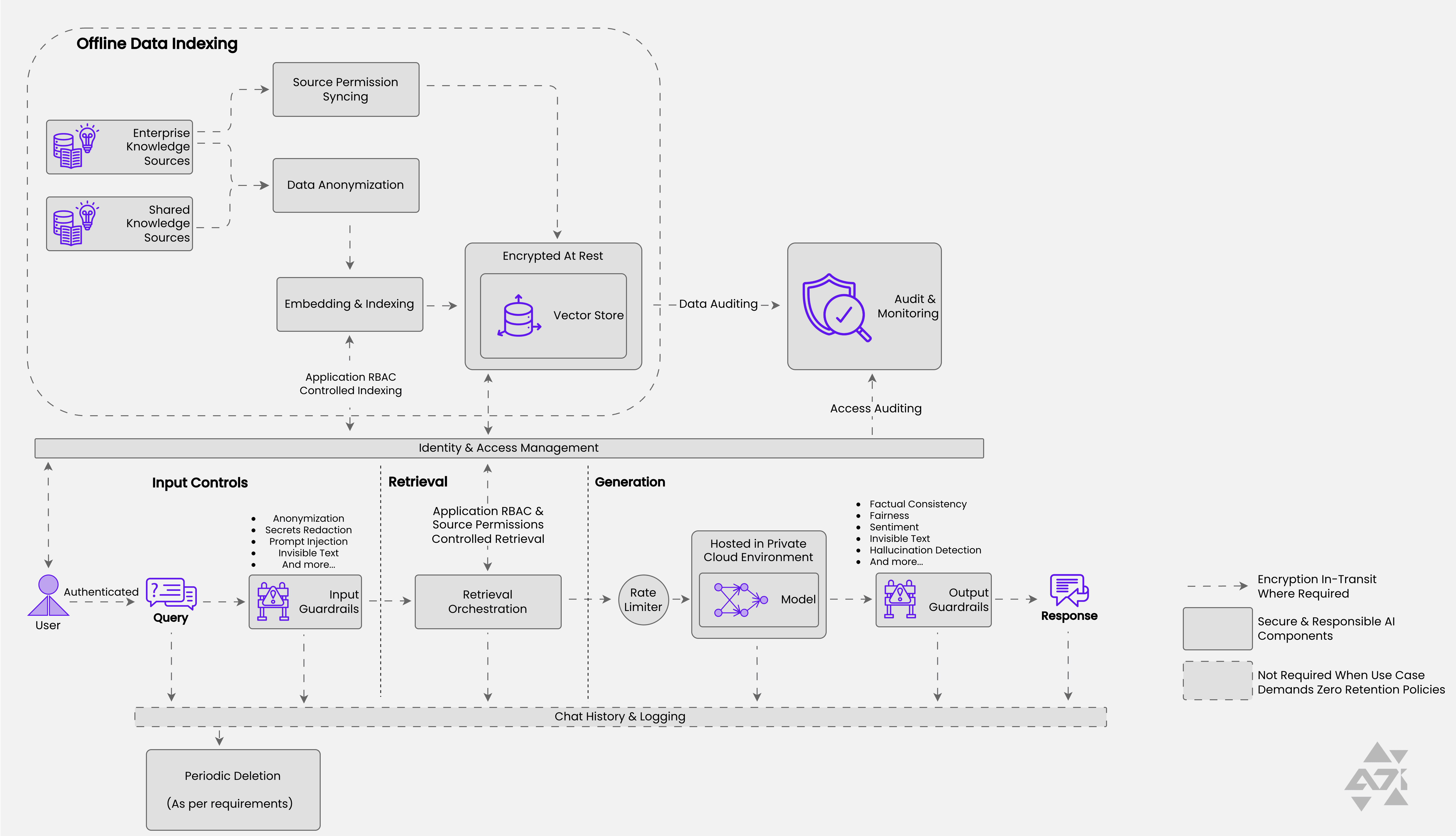 AI systems are inherently non-deterministic and susceptible to manipulation. This pattern introduces governance controls, data security layers, and privacy-preserving techniques to prevent unauthorized access, enforce compliance, and reduce AI bias. It is especially valuable for industries governed by strict regulatory frameworks where data integrity and security are non-negotiable.